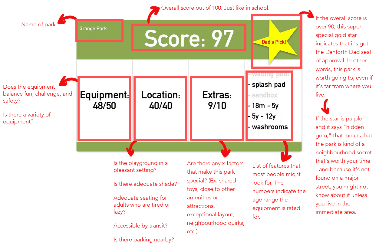 Here's a look at the ratings you'll see for each playground, and the questions I ask myself when rating a playground: